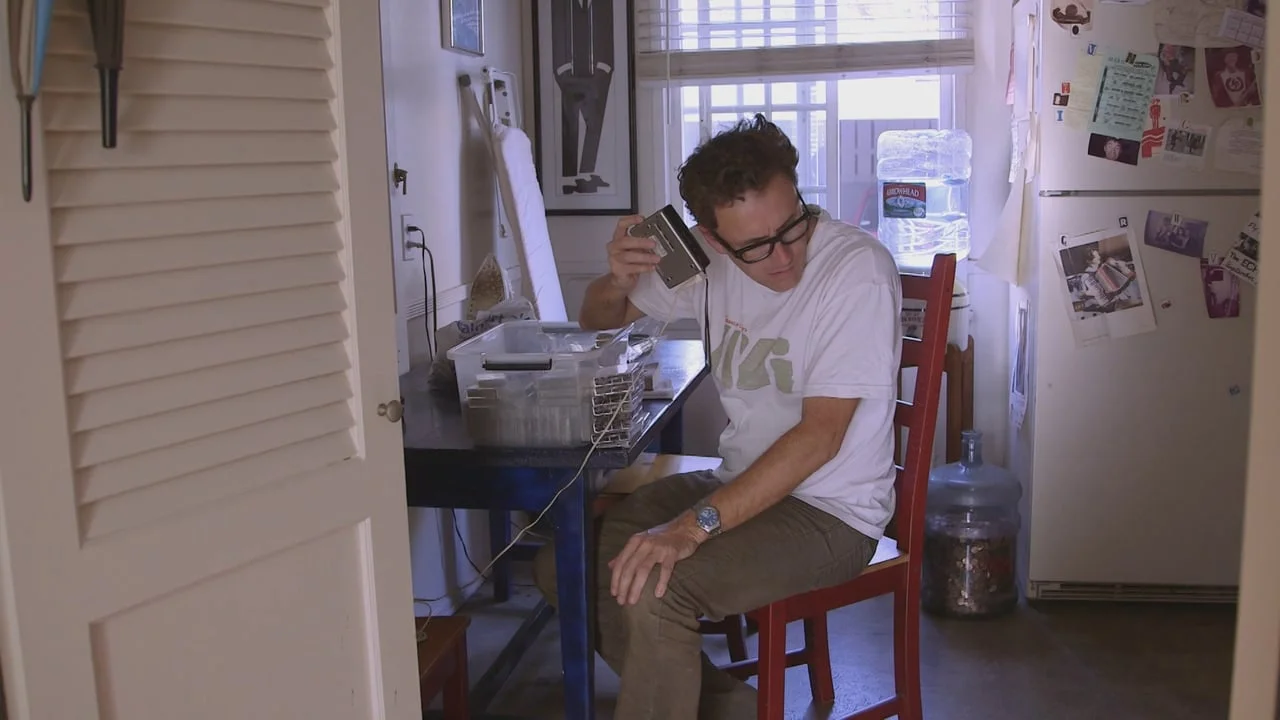 Matt Champagne in the first episode of The Entertainer at Rest, a series of ten-minute video profiles of freelance performing artists at home, examining how they've adapted to their unstructured lifestyles.